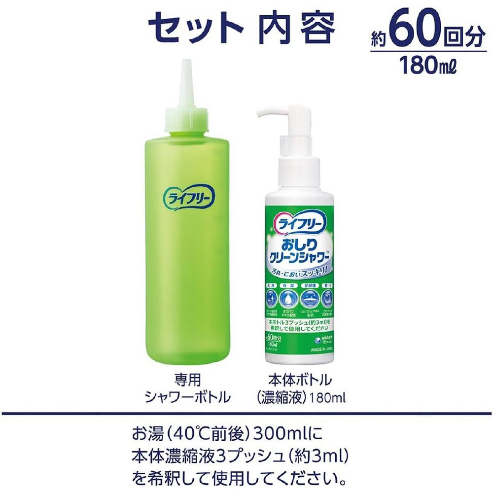 ライフリー おしりクリーンシャワー 本体(濃縮液)+シャワーボトルセット