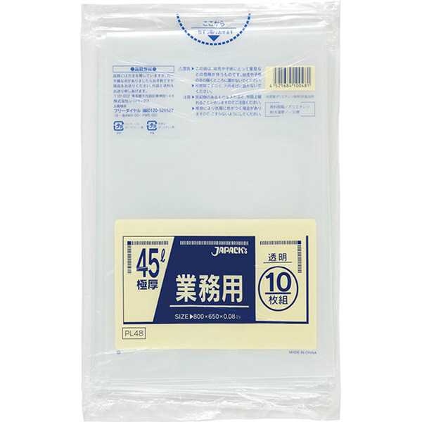 重量物対応 業務用 特厚 45L 10枚 透明 PL48