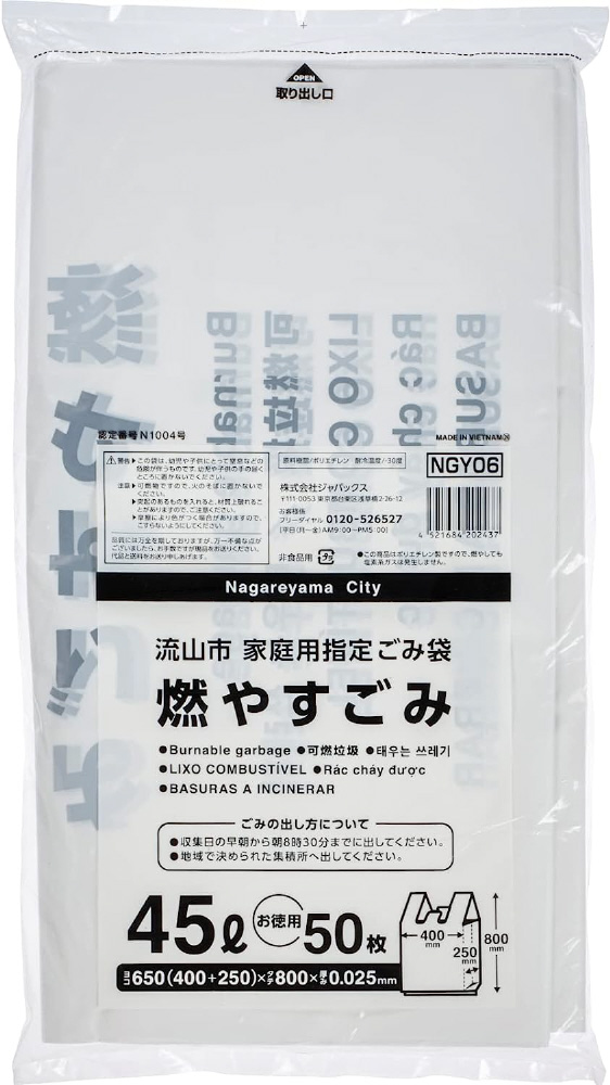 流山市指定 可燃 45L 手付き 50枚 白半透明 NGY06