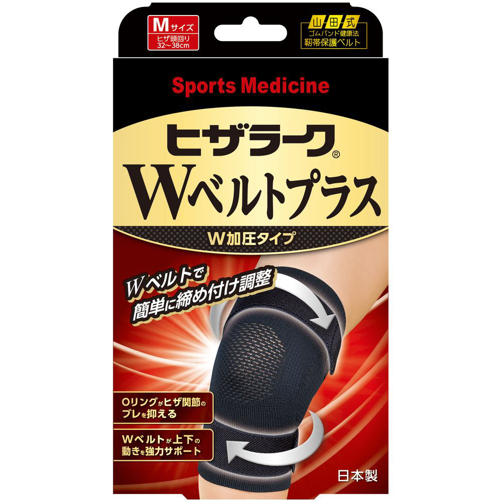 サポーター本体でひざ全体を圧迫、上下2本の加圧ベルトで強力固定。歩行時に起こる膝関節のブレを和らげます。