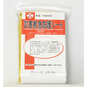 軽く薄くアルミの輻射熱で体温を維持します。緊急時の毛布、雨具代わりに、また担架の代わりにもなります。