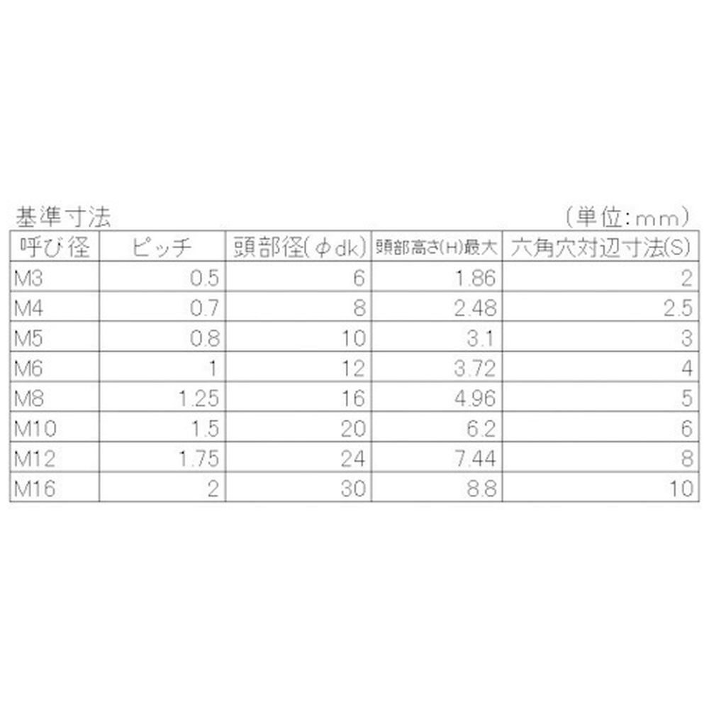 皿型形状の頭部で六角穴付きですので、小ねじより強く締付けることができます。