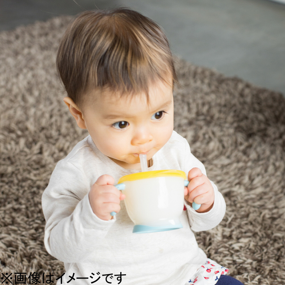 赤ちゃんが初めて出会うマグのカタチ。「早くストローで飲ませたい!」そんなママの声から生まれた。ストロー飲みの練習ができるマグです。