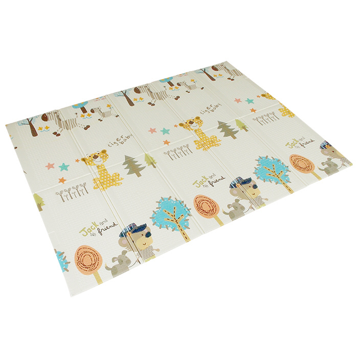 ●しっかりしたクッション性とお手入れが楽なプレイマットです。かんたんに小さく折りたためるので、気軽に収納や持ち運びができます。