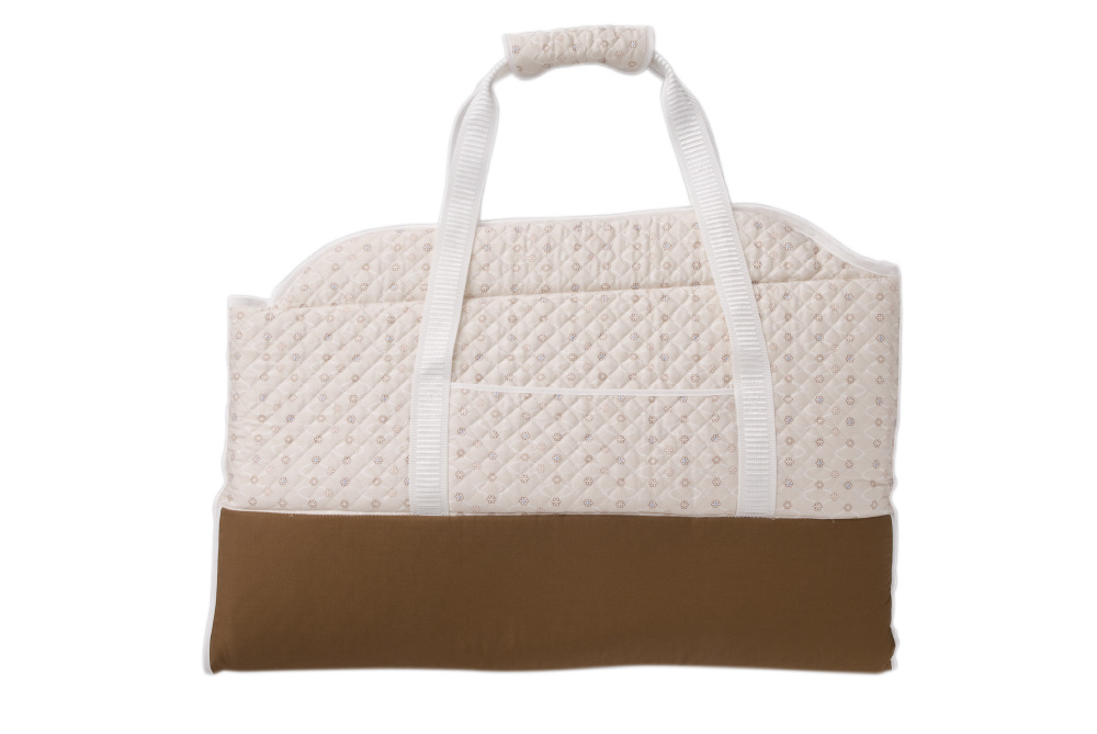 ●赤ちゃんを寝かせておくクーファンとしてはもちろん、オムツ替え、お昼ねマット、プレイマット、バッグにと5通りに使えるマルチなアイテム