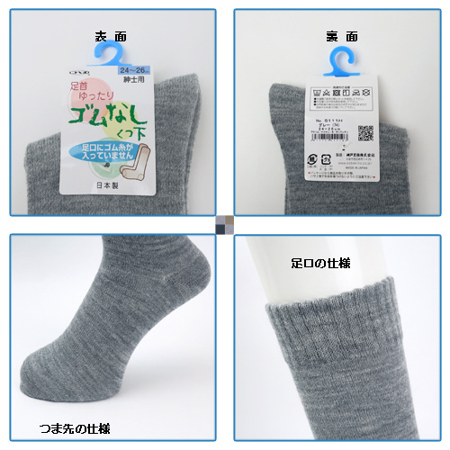 靴下 5111Hゴム無しソックス 紳士 毛混 【秋・冬】 グレー