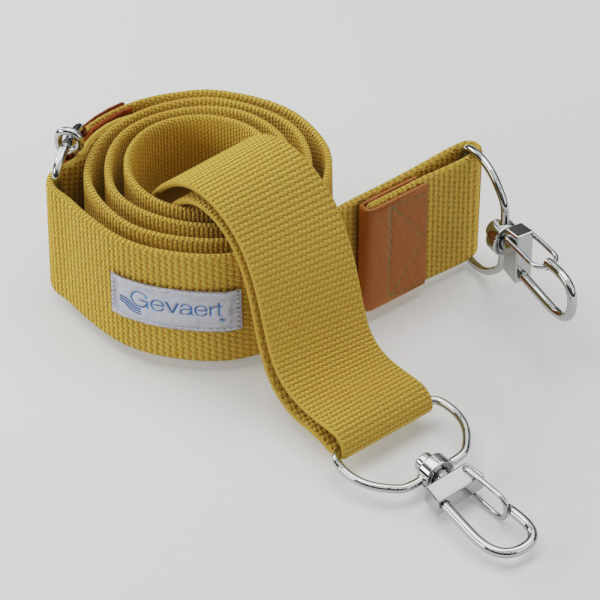 Gevaert( ゲバルト ) はベルギーで 1899 年に創業した織物メーカーです。110 年以上続く歴史と実績で独自の織りが特徴のベルト用いてスマートフォンストラップ向けに加工・縫製をしたショルダーストラップシリーズです。また栃木レザーをワンポイントに使いながら止め具を固定しています。加工・縫製は日本で1つずつ丁寧に行っています。