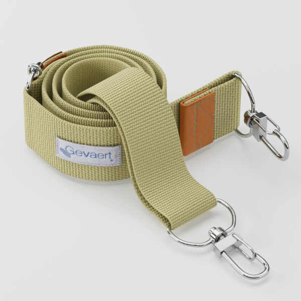 Gevaert( ゲバルト ) はベルギーで 1899 年に創業した織物メーカーです。110 年以上続く歴史と実績で独自の織りが特徴のベルト用いてスマートフォンストラップ向けに加工・縫製をしたショルダーストラップシリーズです。また栃木レザーをワンポイントに使いながら止め具を固定しています。加工・縫製は日本で1つずつ丁寧に行っています。