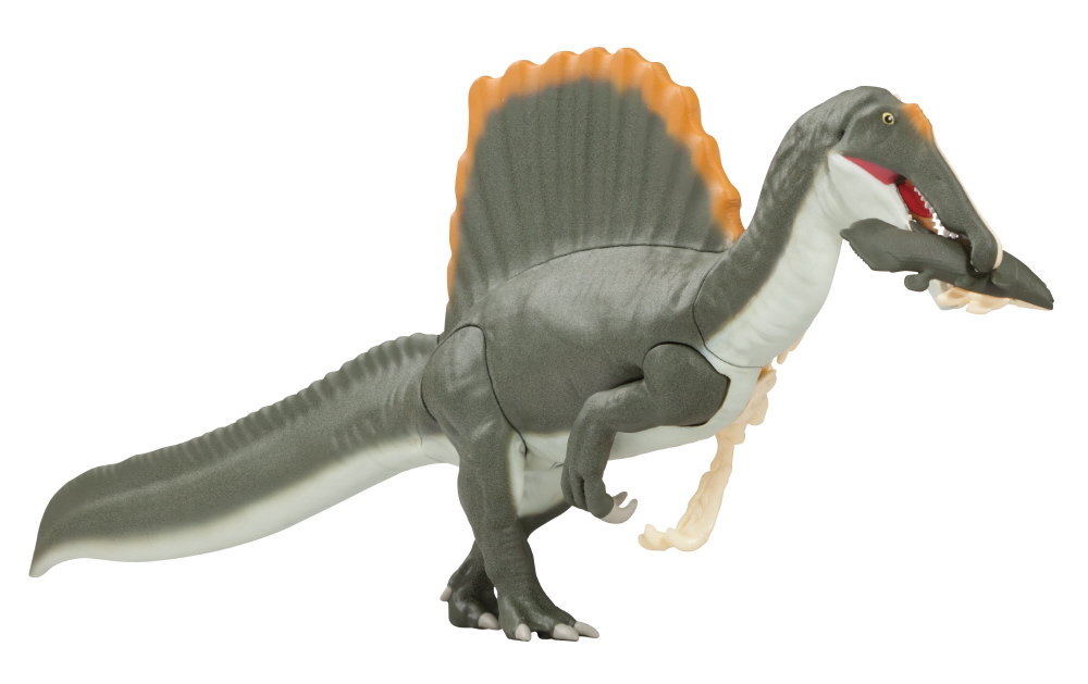 マウソニア(大型シーラカンス)が付属し、スピノサウルスの口にくわえさせることができます。