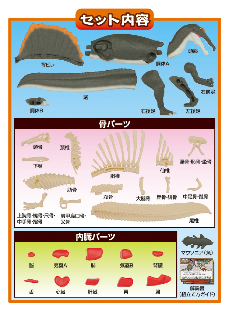 ばらばらの32パーツを組んでスピノサウルスを完成させよう!