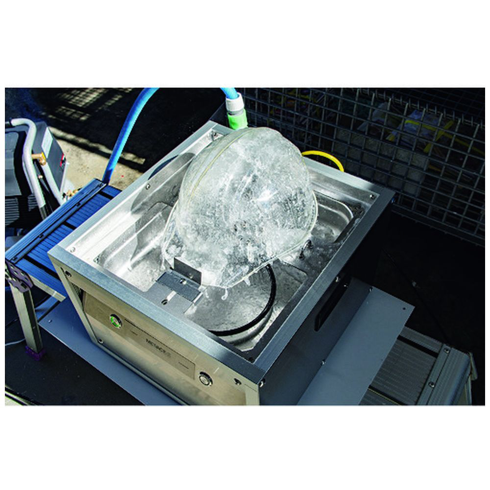 ・高速回転水流でヘルメットを簡単に洗浄する装置です。