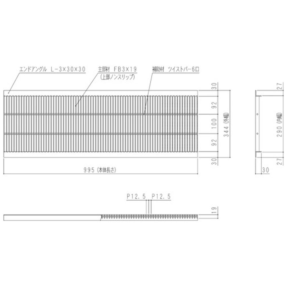 奥岡 スチール製 U字溝用 グレーチング 溝幅300用 細目 ノンスリップ OKUNP33019