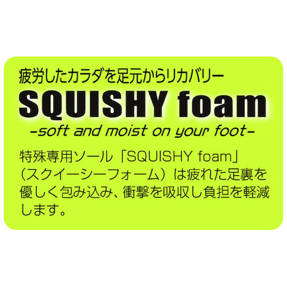 ■特殊専用ソール「SQUISHY foam(スクイーシーフォーム)」は疲れた足裏を優しく包み込み、衝撃を吸収し負担を軽減します。