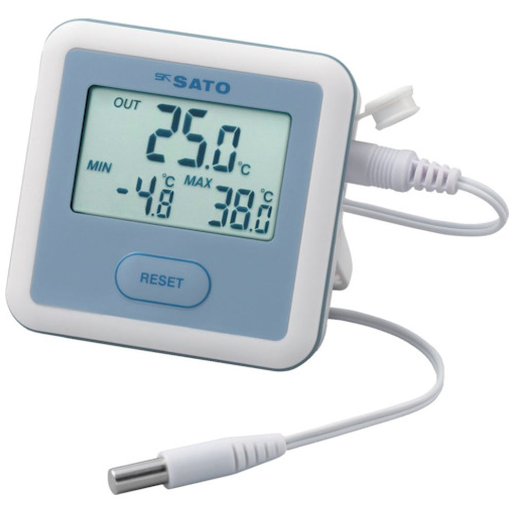 本体内臓センサと外部センサを切り替えて使用できるデジタル最高最低温度計です。