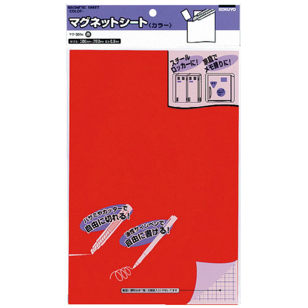 コクヨ マグネットシート(カラー )赤 300×200mm 0.8mm厚 マク−301R 51150433