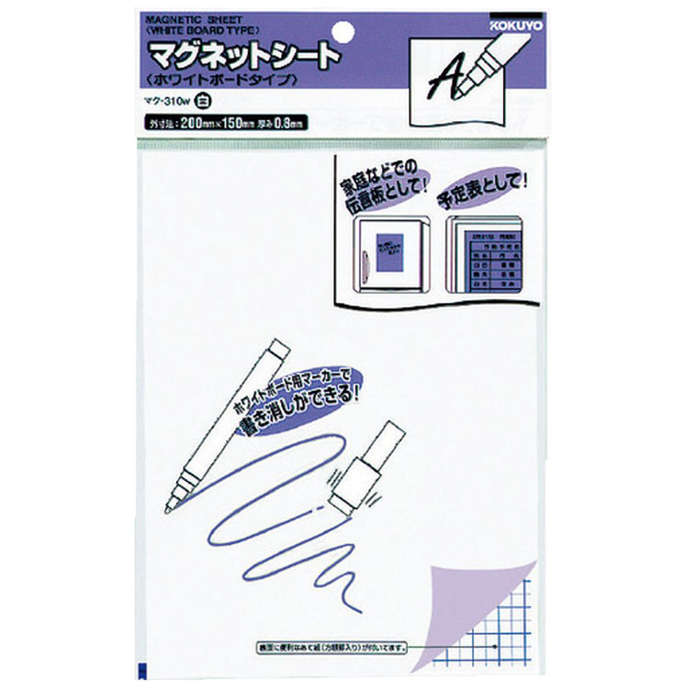 コクヨ マグネットシート(ホワイトボードタイプ) 200×150mm 0.8mm厚 マク−310W 51150600