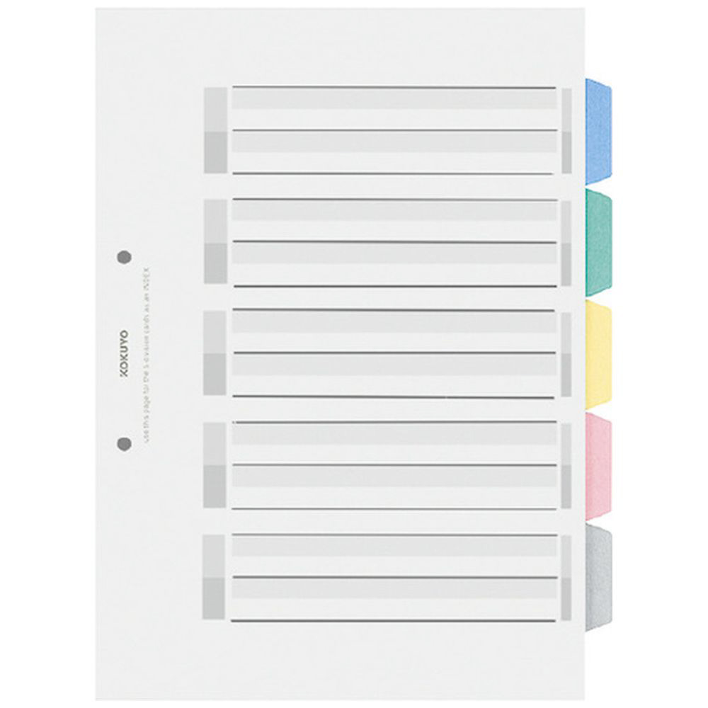 コクヨ カラー仕切カード<PP>(ファイル用) A4縦 5山+扉紙 2穴 5組入 シキ−P30 54864986