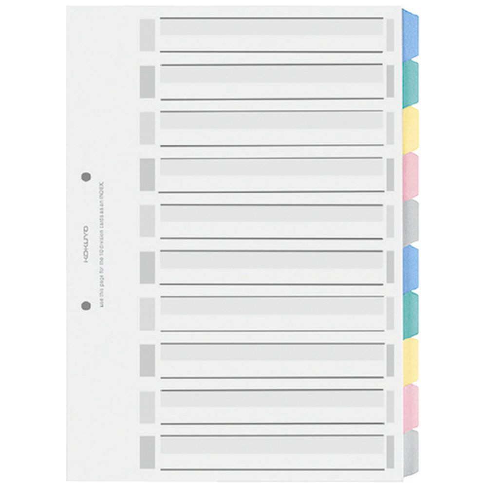 コクヨ カラー仕切カード<PP>(ファイル用) A4縦 10山+扉紙 2穴 1組入 シキ−P120 54864955