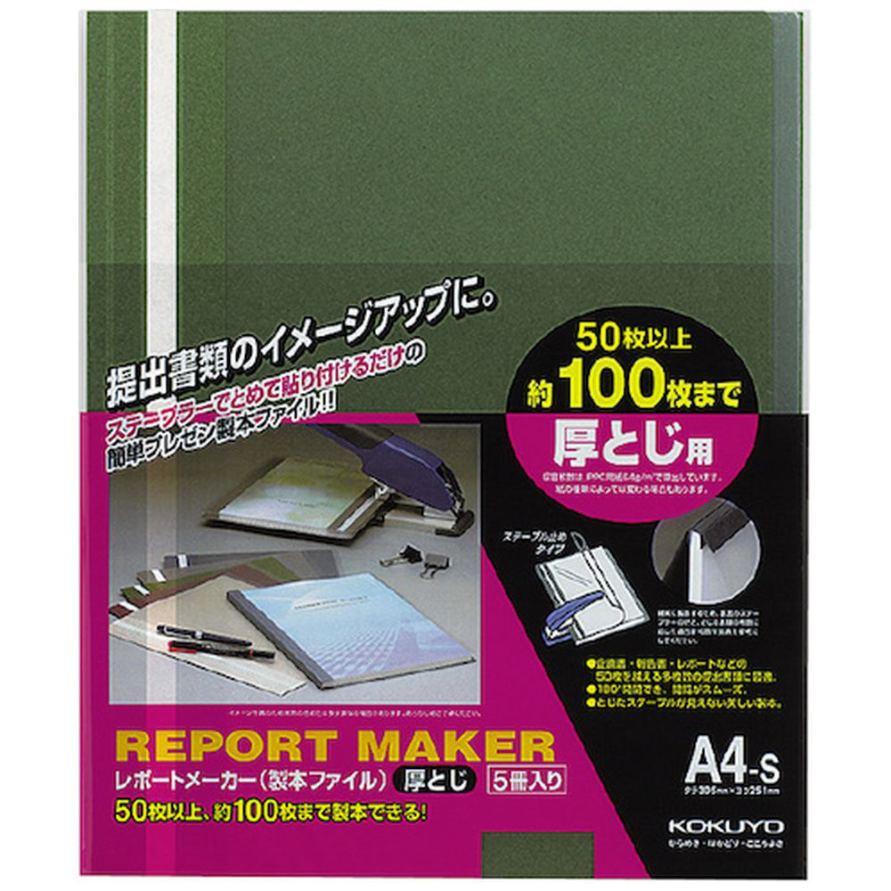 コクヨ レポートメーカー(厚とじ・製本ファイル) A4縦 緑 5冊入 セホ−60G 58364635