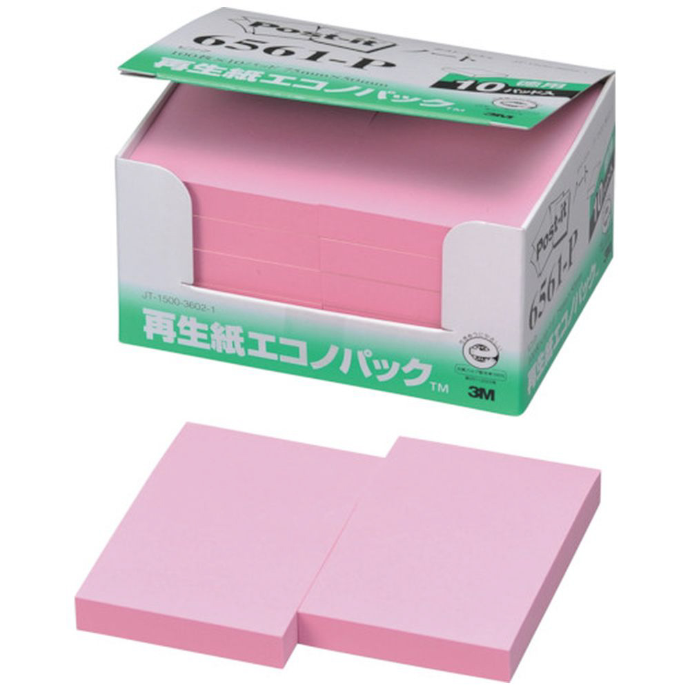 3M ポスト・イット 75X50mm 100枚X10パッド ピンク 6561P