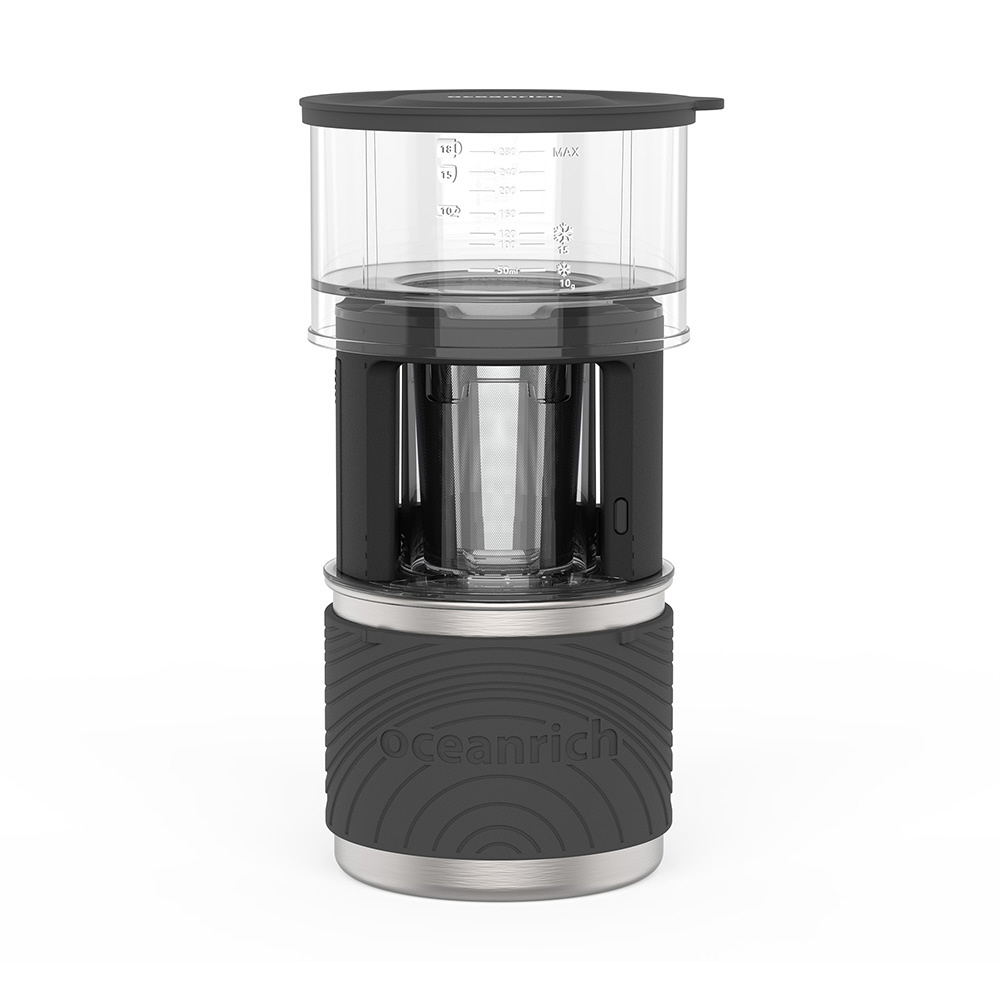 特許取得のoceanrich360度回転ドリッパーがあなたに代わってハンドドリップをしてくれ、美味しいコーヒーやお茶を淹れることができます。ステンレス製のフィルターは豆に含まれている油分をそのままドリップできますので、油分に含まれる豆本来の甘みとコクを味わえます。