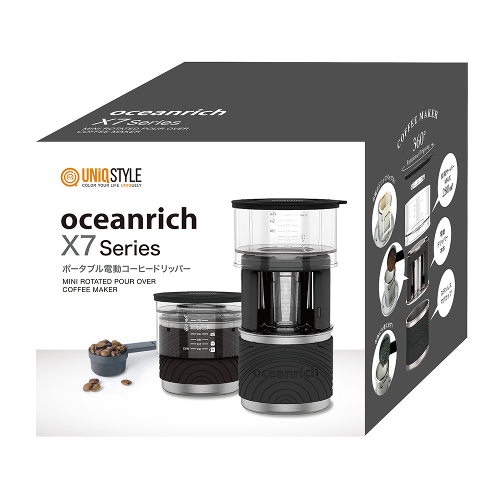 UQ-ORX7BL 360度電動回転ドリッパー・マグカップセット oceanrich X7シリーズ コーヒー/煎茶 ハイブリッドモデル Black Black UQ-ORX7BL