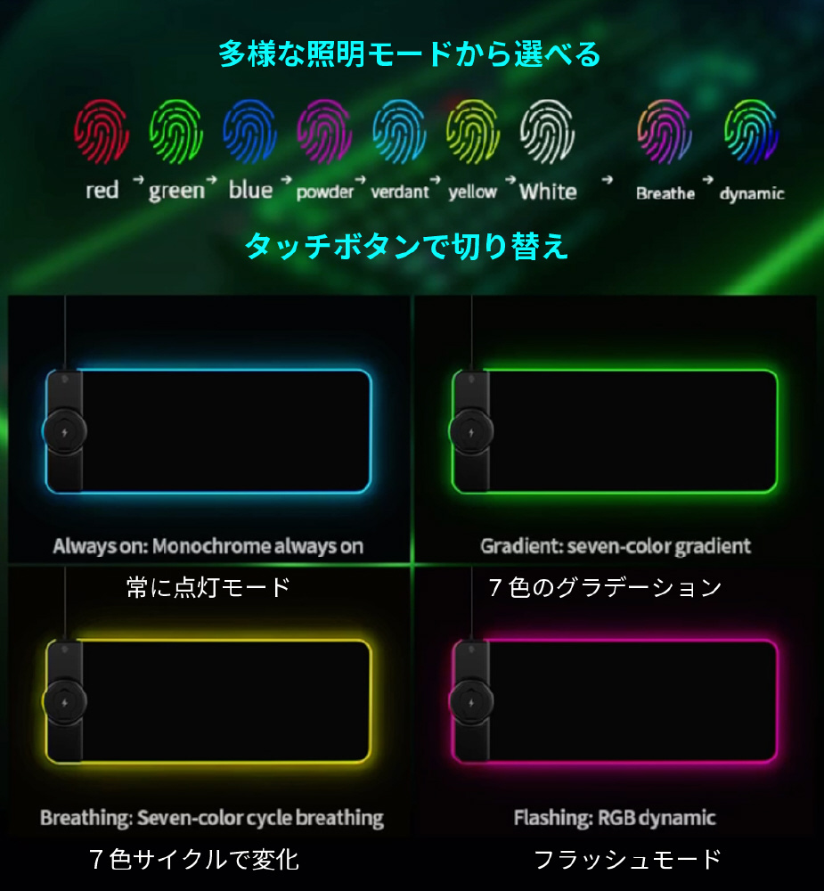 ワイヤレス充電器搭載美しく光るマウスパッド
