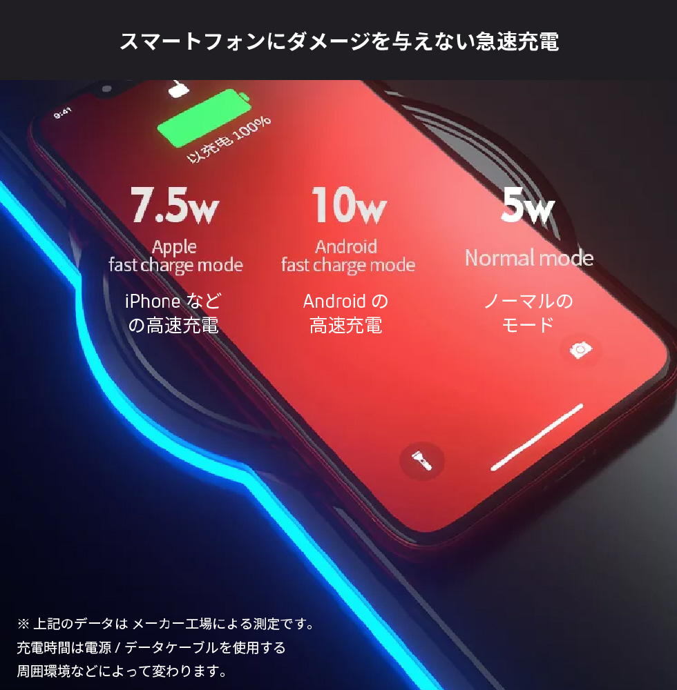 ・iPhoneやAndroidのスマホなどQiワイヤレス充電