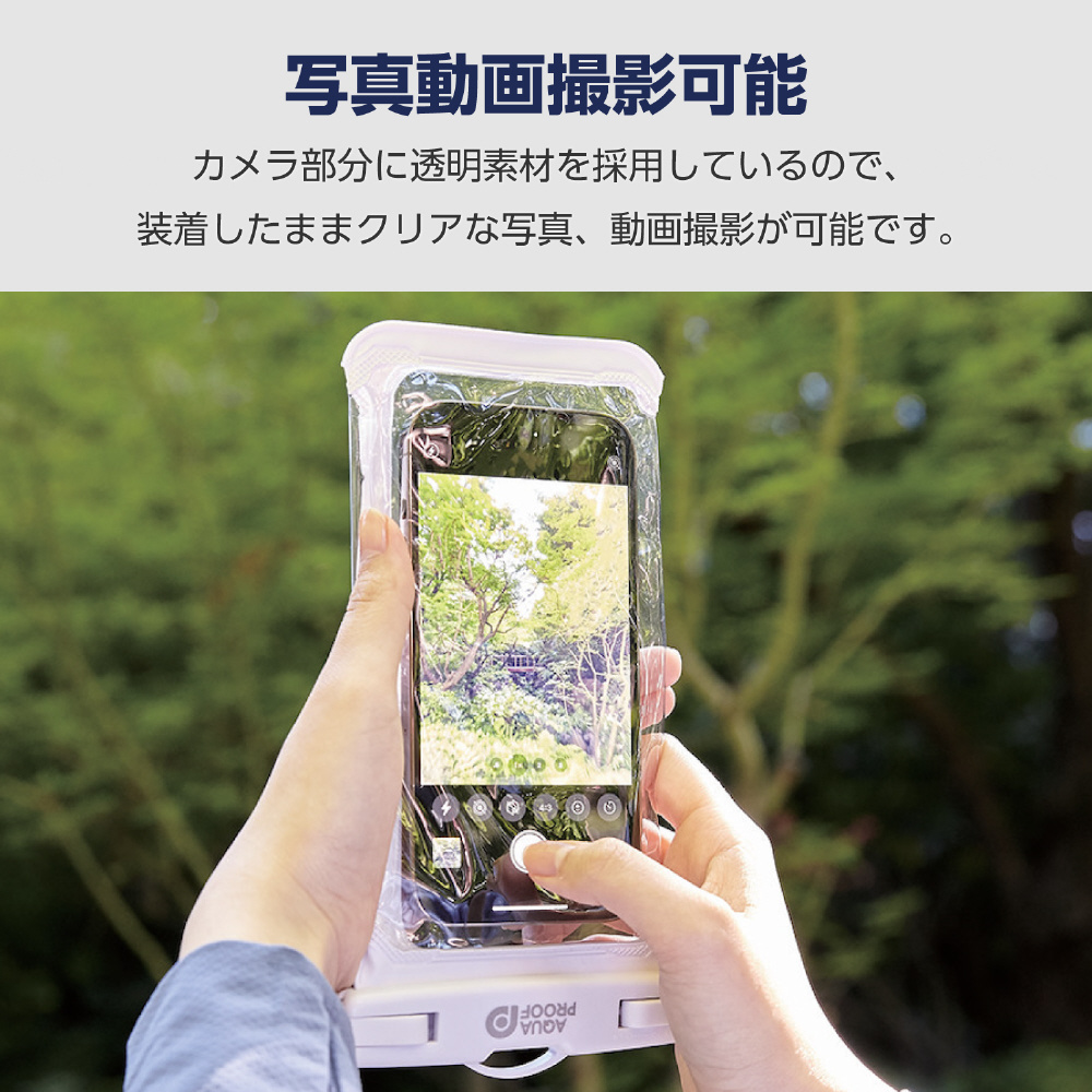 JIS保護等級 IPX8相当の防水性能を実現する、水深10mで30分まで使用可能なスマートフォン用防水ケース“AQUA PROOF”です。屋外で水や汚れを気にせず使用でき、装着したまま写真や動画撮影も可能!サイドボタンが押しやすい操作性抜群の立体構造です。約6.9インチまでのスマートフォンに対応しています。