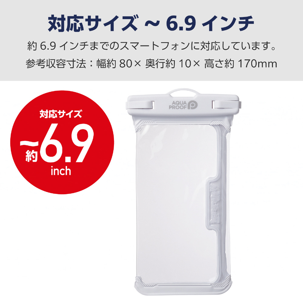 スマホ防水ケース IPX8 ( 防水ケース ×1 ネックストラップ ×1) 【 iPhone Android 等 6.9インチまでの スマホ 対応】 立体構造 お風呂 海 プール スキー スノボ アウトドア AQUA PROOF ホワイト P-WPSR04WH
