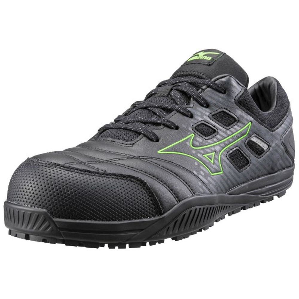 27.0cm 男女兼用 安全靴 オールマイティ TDII11L 靴幅:3E相当(ブラック×グリーン) F1GA2300【JSAA・普通作業用(A種)認定品 耐滑 プロテクティブスニーカー】
