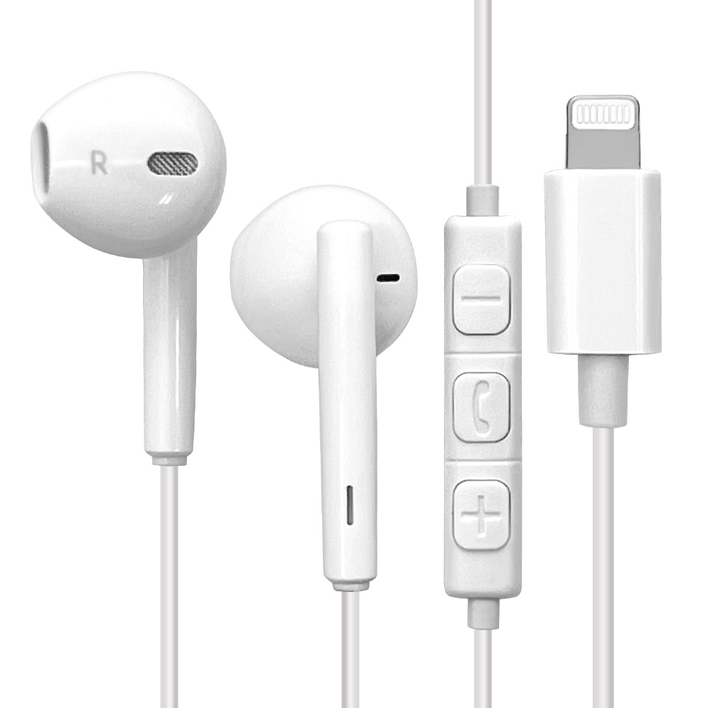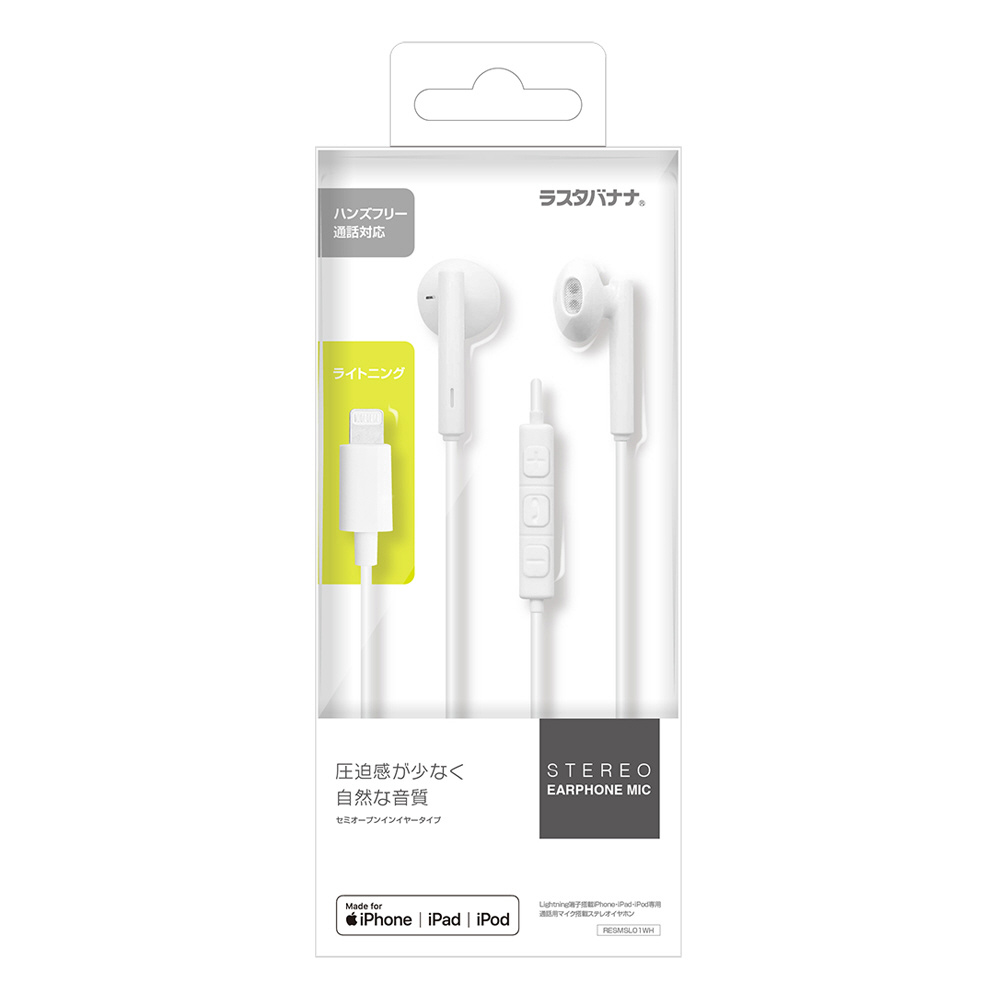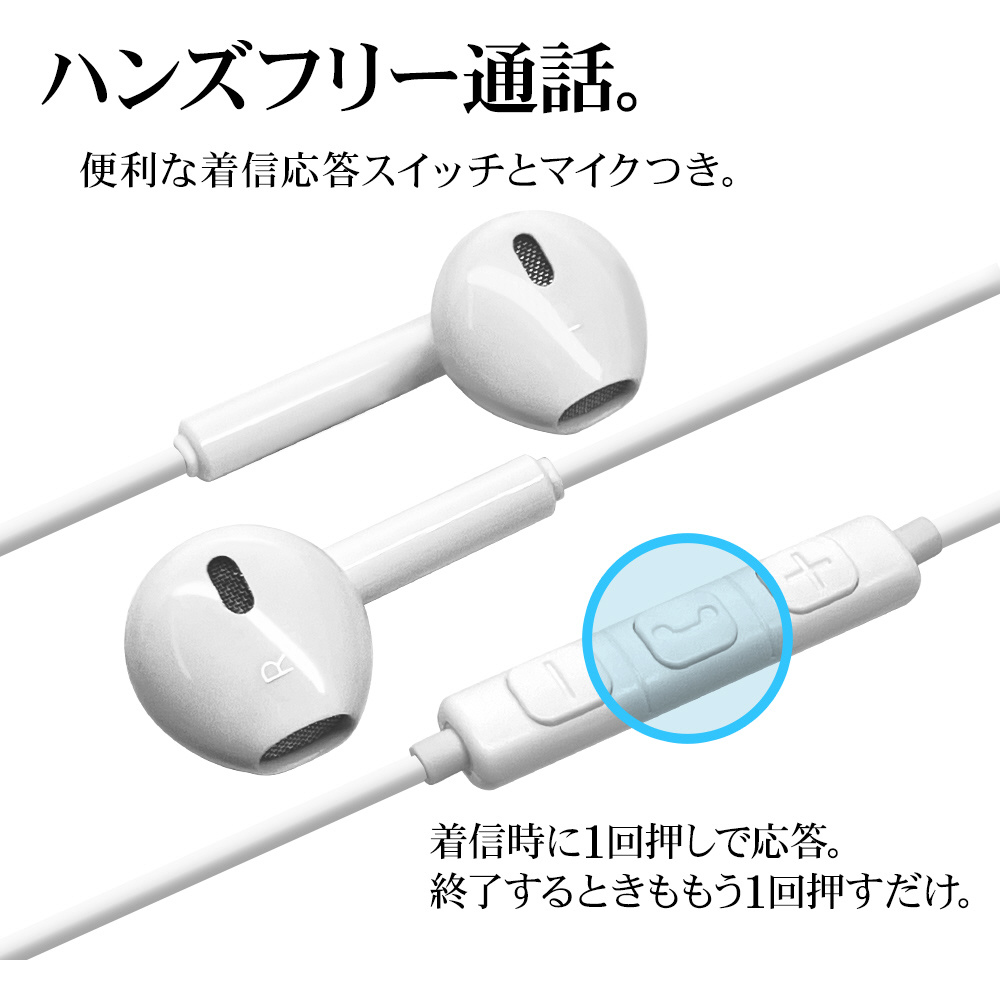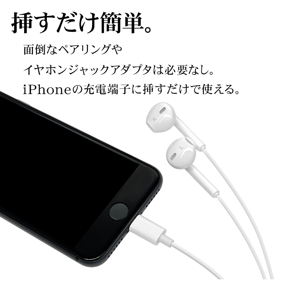 Lightning端子が搭載されたiPhoneやiPad、iPod用(以下、機器)のステレオイヤホンです。 機器を手に持たずに通話や音楽の視聴ができます。