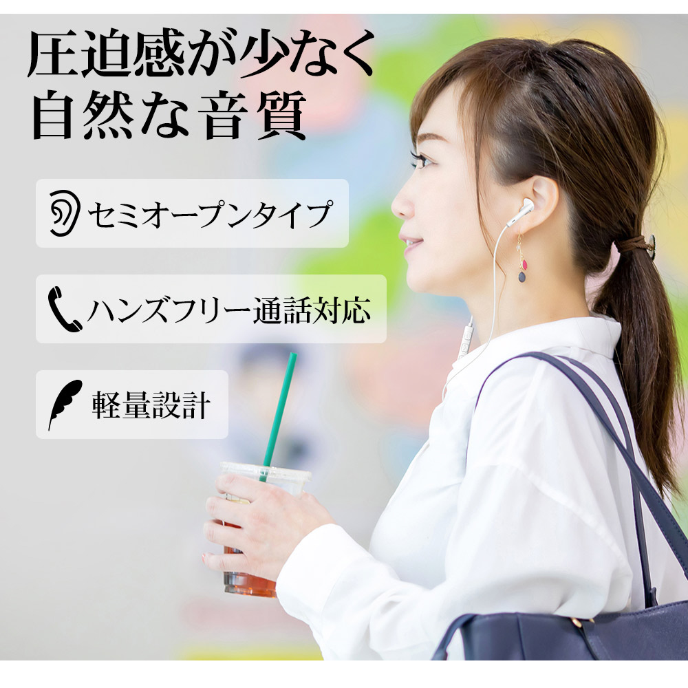 イヤホン部は、圧迫感が少なく自然な音質のセミオープンインイヤータイプを採用しています。