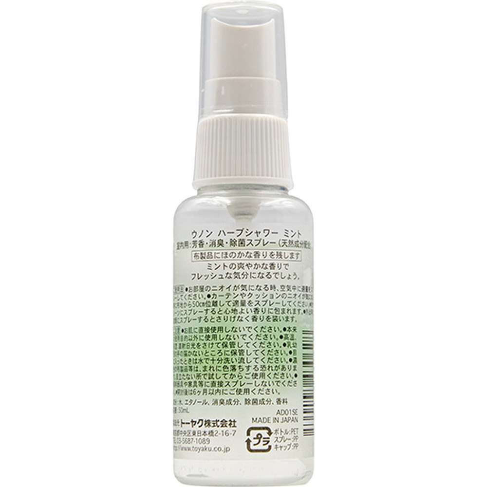 ミントの香りの携帯用芳香・消臭・除菌スプレーです。やわらかなハーブのミストシャワーでやすらぎの空間を創ります。布製品にほのかな香りを残します。(天然成分(精油)配合)