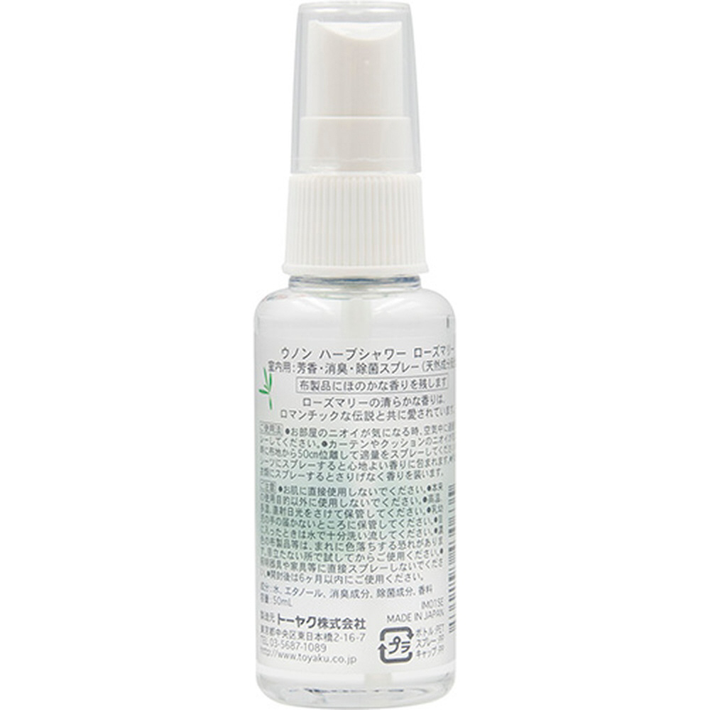 ローズマリーの香りの携帯用芳香・消臭・除菌スプレーです。やわらかなハーブのミストシャワーでやすらぎの空間を創ります。布製品にほのかな香りを残します。(天然成分(精油)配合)