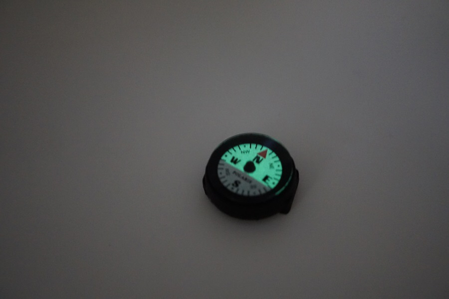 文字盤の北側半分が蓄光で光るため、 暗闇でもすぐに方向がわかります。