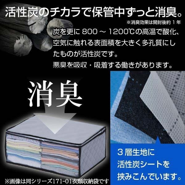 通気性に優れた不織布製:活性炭シートを挟んだ生地を使用。湿気やホコリから守りながら消臭もできます。ホコリの溜まりやすい押入れ収納に最適。