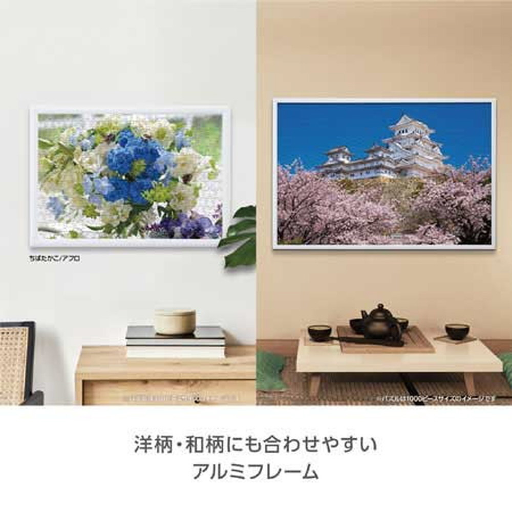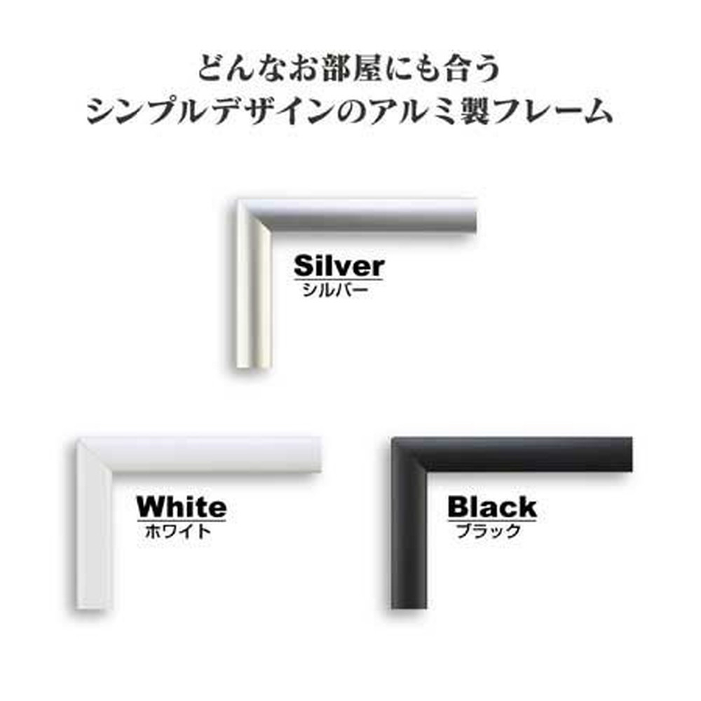 どんなお部屋にも合うシンプルデザインのアルミ製フレーム絵柄を引き立てるオールラウンダーなホワイト。