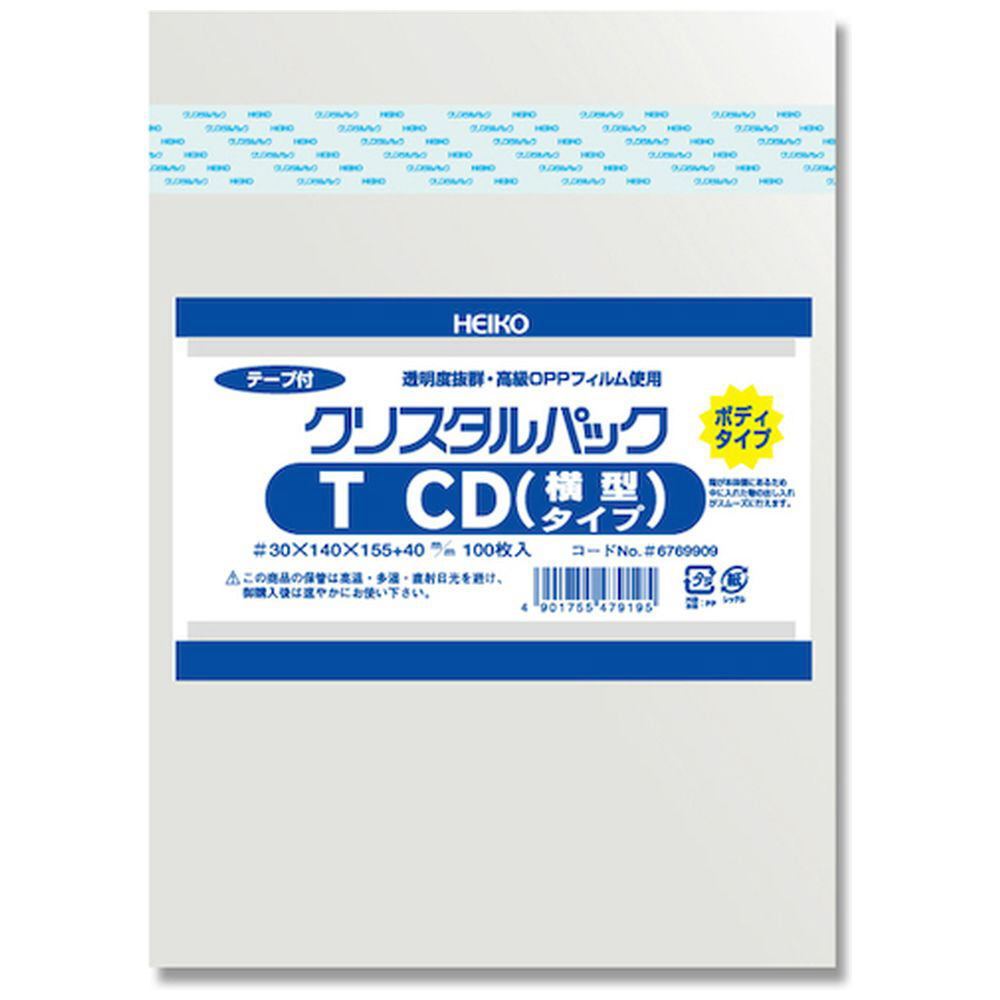 HEIKO OPP袋 クリスタルパック テープ付 ボディタイプ T CD(横型) 100枚入り 6769909
