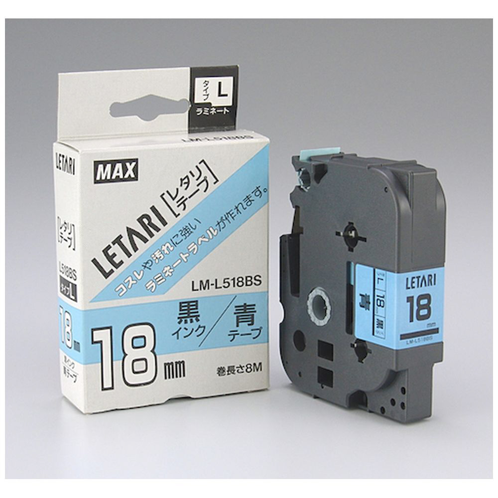 MAX ビーポップミニ用ラミネートテープ LM−L518BS 青×黒文字 18mm幅×8m巻 LML518BS