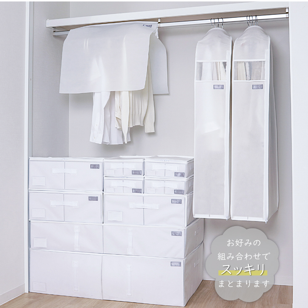 【通気性のよい不織布製】:通気性のよい不織布製で、湿気やニオイがこもらず保管に最適。ホコリなどの汚れから守る。