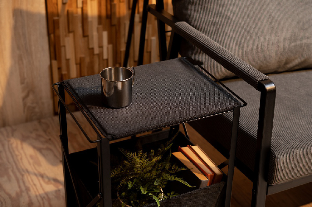 ■3種類のカラーバリエーション/カラーは、落ち着いた印象の「ベージュ」、幅広いテイストのお部屋に溶け込める「ブラック」、アウトドアシーンで人気な「グリーン」の合計3色をご用意。スチールフレームはブラックカラーを採用し、スタイリッシュで格好いいデザインに仕上げました。