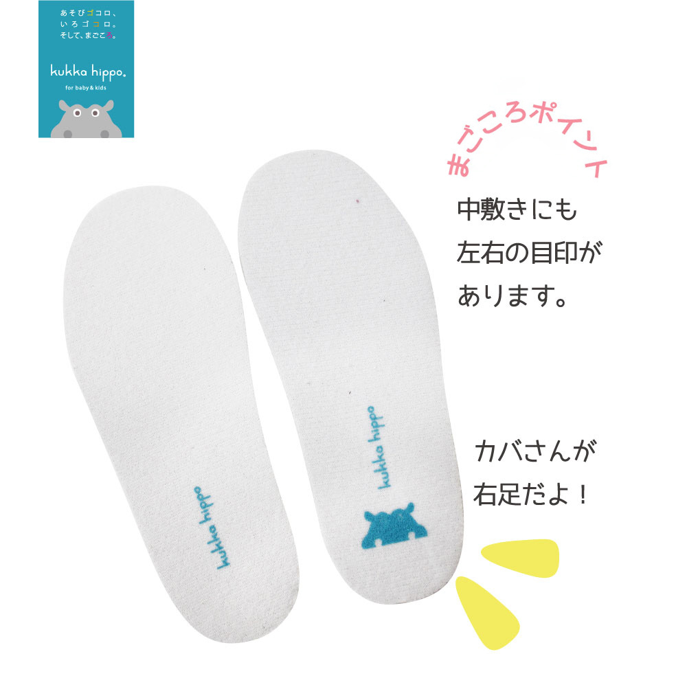 左右を区別するカラフルなタグがついているので、右足と左足が迷子になりにくくなっています♪ 中敷きにも左右の目印があります。かかと部分に反射テープがついています。