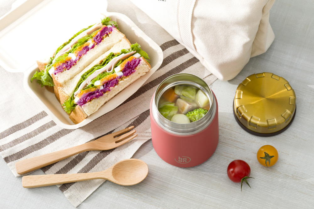 ステンレス真空二重構造でおいしく保温・保冷ができるステンレスボトル。<BR>王冠型モチーフのスープジャー。
