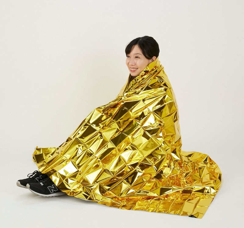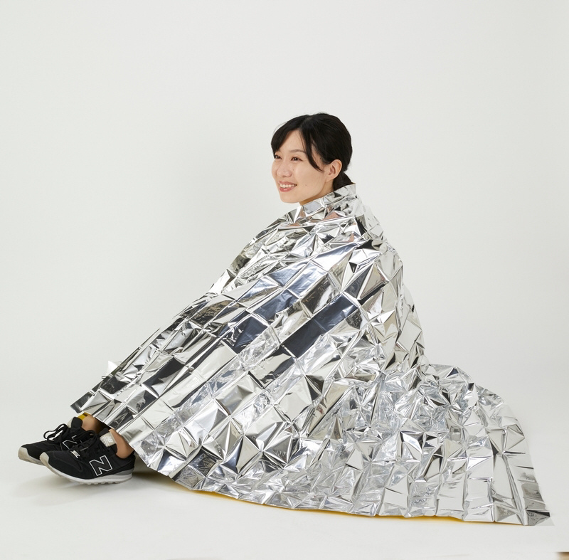 いざという時に羽織って体温低下を防ぐことができるアルミ製のブランケットです