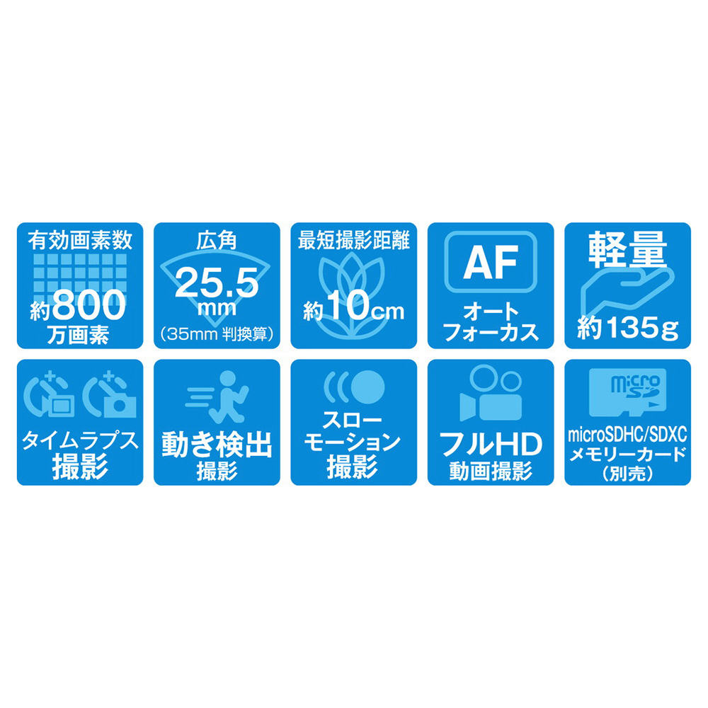 ・リチウムイオン充電池・ストラップ・ USBケーブル(Type-A to microUSB)・取扱説明書・専用ポーチ
