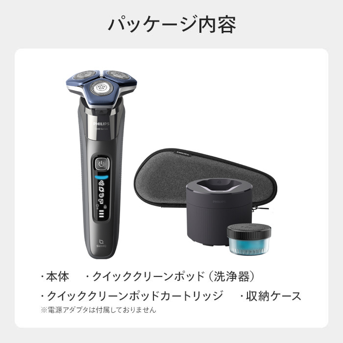 付属品 シェーバー本体、シェービングユニット、取扱説明書、グローバル保証書、延長保証リーフレット、充電ケーブル、クリーニングブラシ、収納ケース、クイッククリーンポッド、クイッククリーンポッドカートリッジ、※充電アダプターは同梱されません。