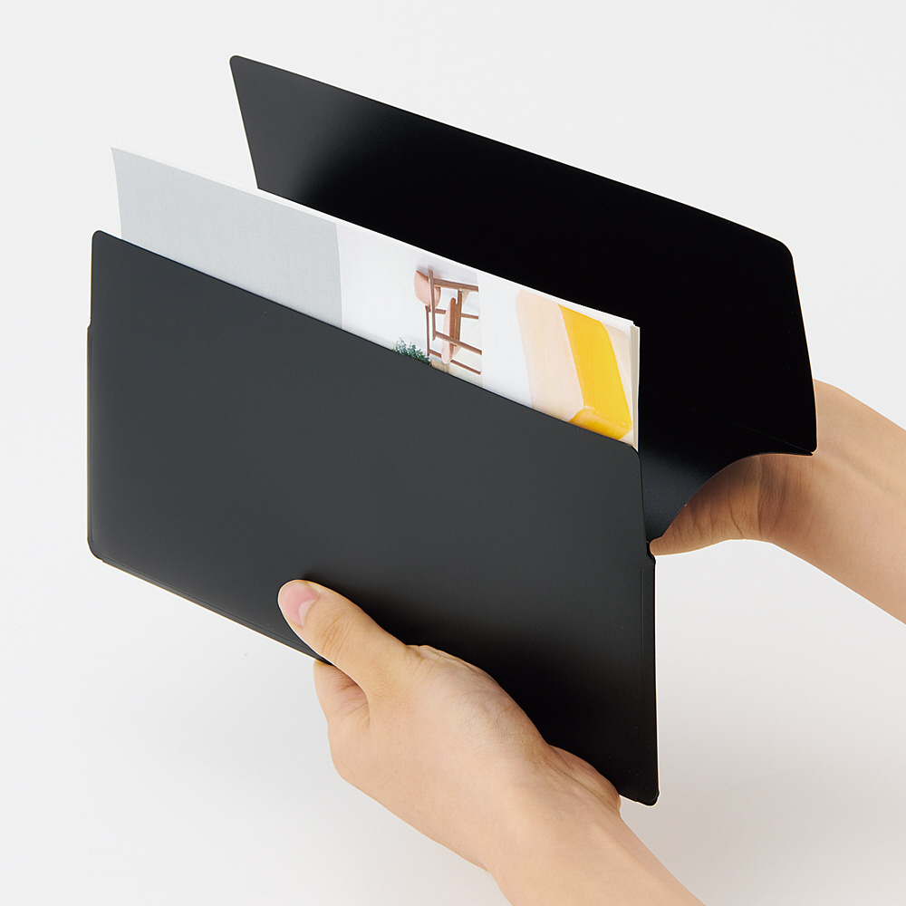 書類が抜け落ちにくいフタ付きの薄型ホルダー