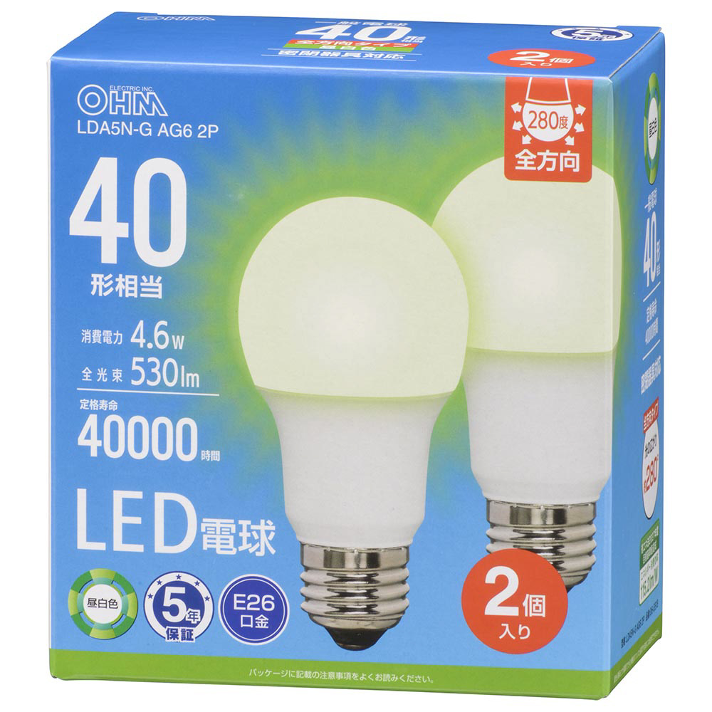 全光束530ルーメン、白熱電球40W相当の明るさ