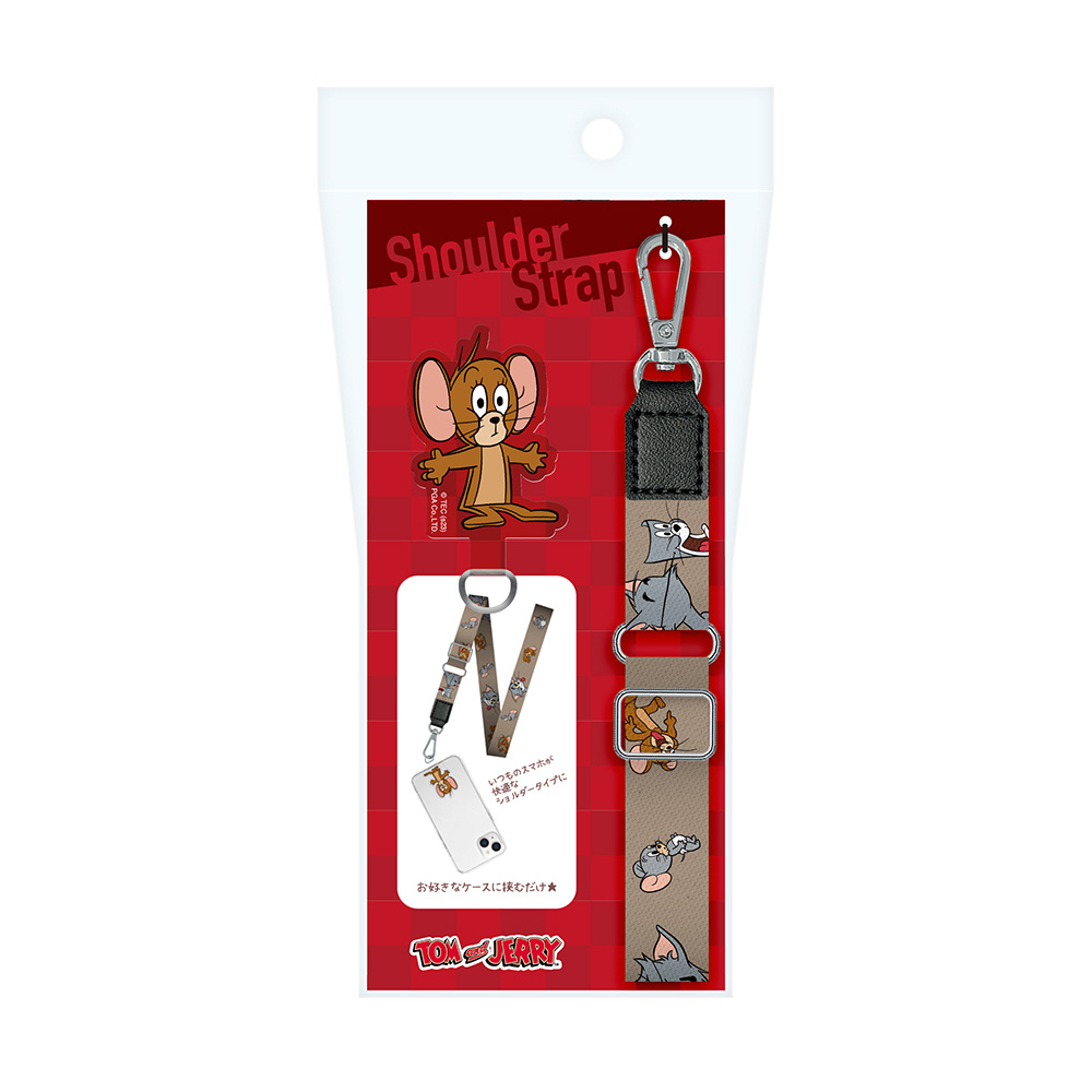 お気に入りのケースに挟むだけで快適なショルダータイプに切り替え可能な、「トムとジェリー」デザインのストラップホルダー付 ショルダーストラップです。